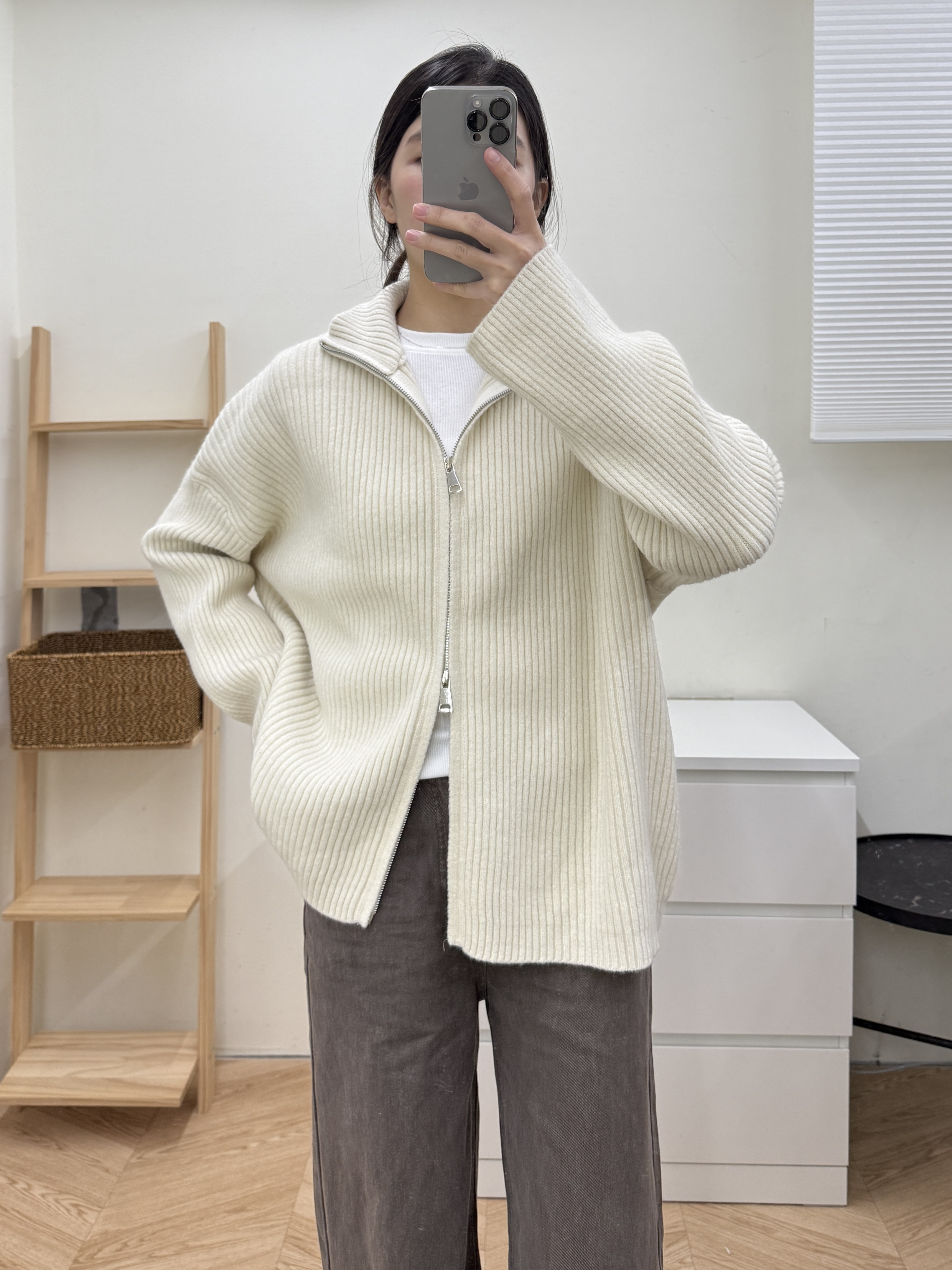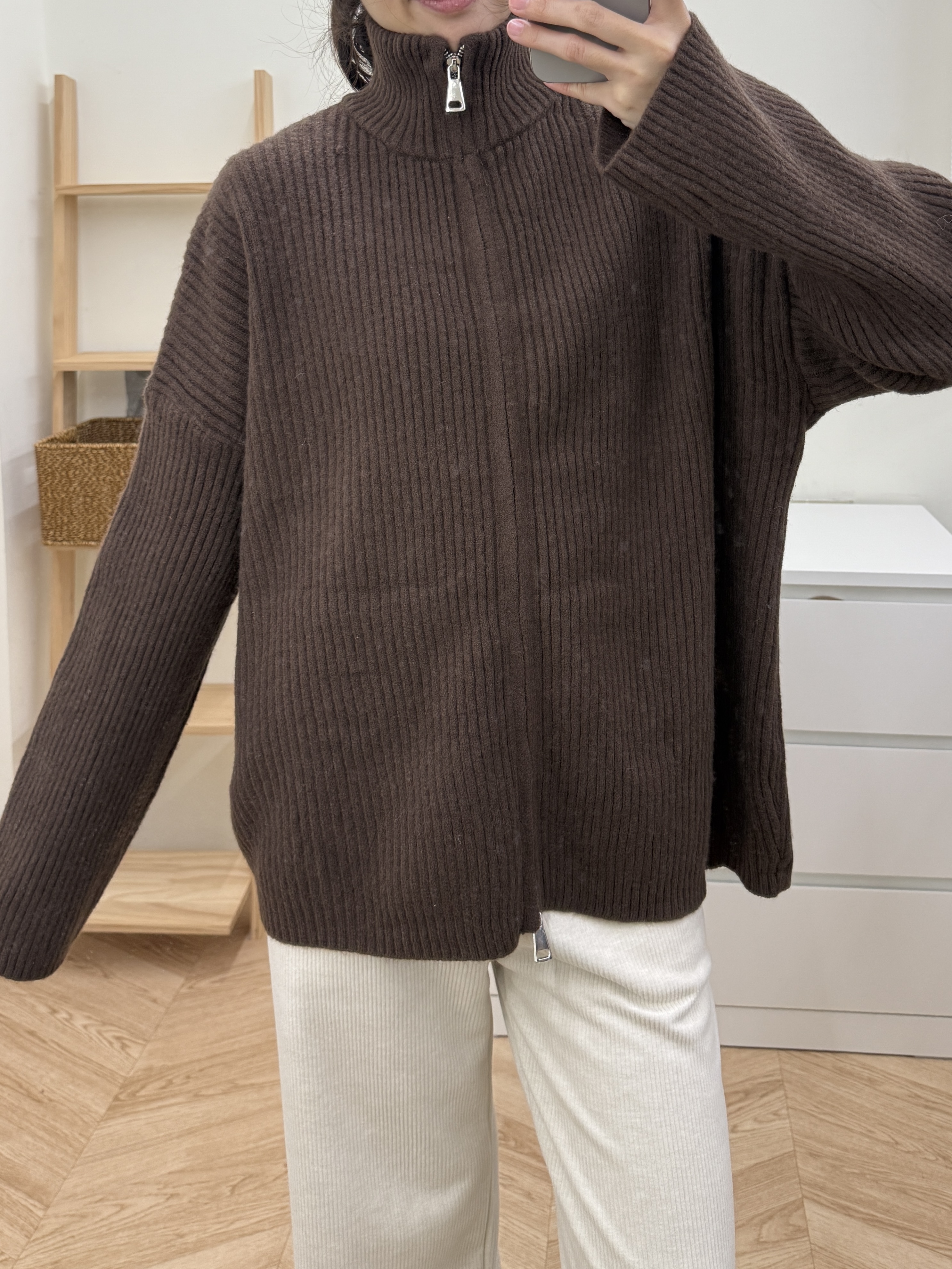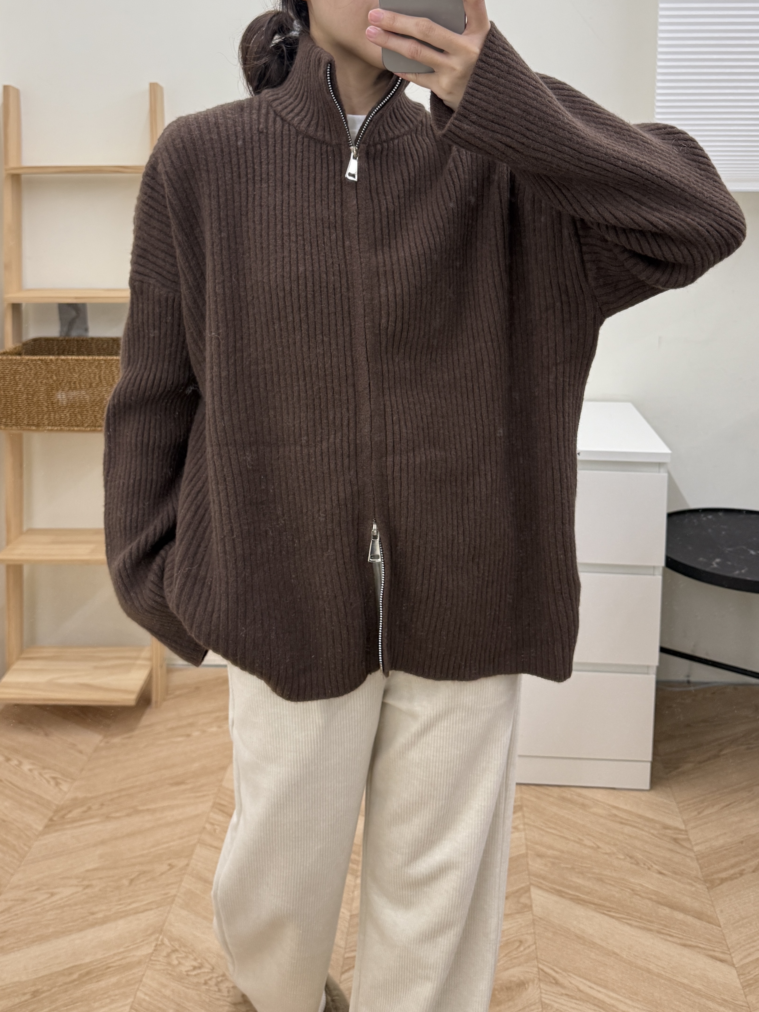 坑條雙拉鍊毛衣外套